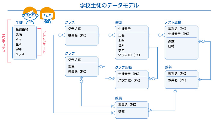ここで解説に用いたデータモデルは、構造化データ(列と行によって表現できるテキストと数値のデータ)を用いるリレーショナルデータベース向けのデータモデルでしたが、昨今は文書や画像、音声など、さまざまな形式のデータを扱う非構造化データのデータベース(NoSQL等)の重要度が増しています。ビッグデータとして収集されるデータにも非構造化データが多く含まれています。