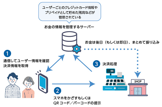 日本では現金を使わない「キャッシュレス」の決済方法を普及させるための施策を進めており、モバイルペイメントは、その主力となるサービスです。従来、キャッシュレスの支払い方法はクレジットカードでした。しかし、店舗側が導入する際に、モバイルペイメントは、クレジットカードに比べて、審査や機器の導入が手軽で、手数料も低いことから、新たに導入する店舗が増えています。