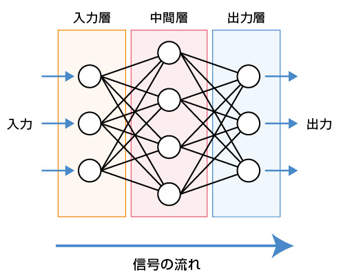 どれだけ複雑な学習ができるのかは、「中間層」と呼ばれる、間の層を、いくつ用意するかによります。