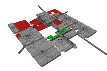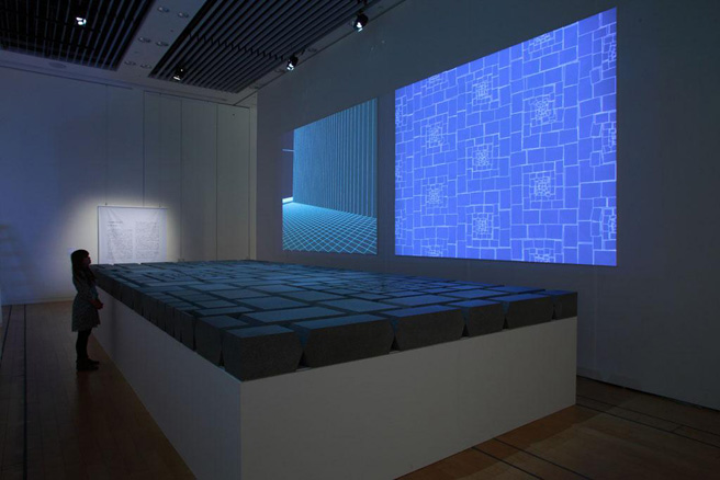 柄 沢 たとえばこちらの「中心が移動し続ける都市」を見てください。これはNTTインターコミュニケーション・センター[ICC]で発表された都市計画のインスタレーションですが、こちらにもフィボナッチ級数が組み込まれています。そうすることで、よく見るとわかりますが、中心に行けば行くほど街が小さくなり、またそこへ向かうにも決して直線で向かうことができない都市になっています。