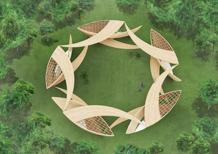 たとえば中国瀋陽市の「瀋陽市方城地区計画」では地下導線にフィボナッチ級数を組み込んだり、フィリピン・ネグロス島の「バンタヤンパークセンター」では「渦」の概念と「編み込み」というアイデアで建築を作ったり、日本ですが、埼玉の大宮にある「s-house」ではスモールワールド・ネットワークという概念から建築を生み出しています。